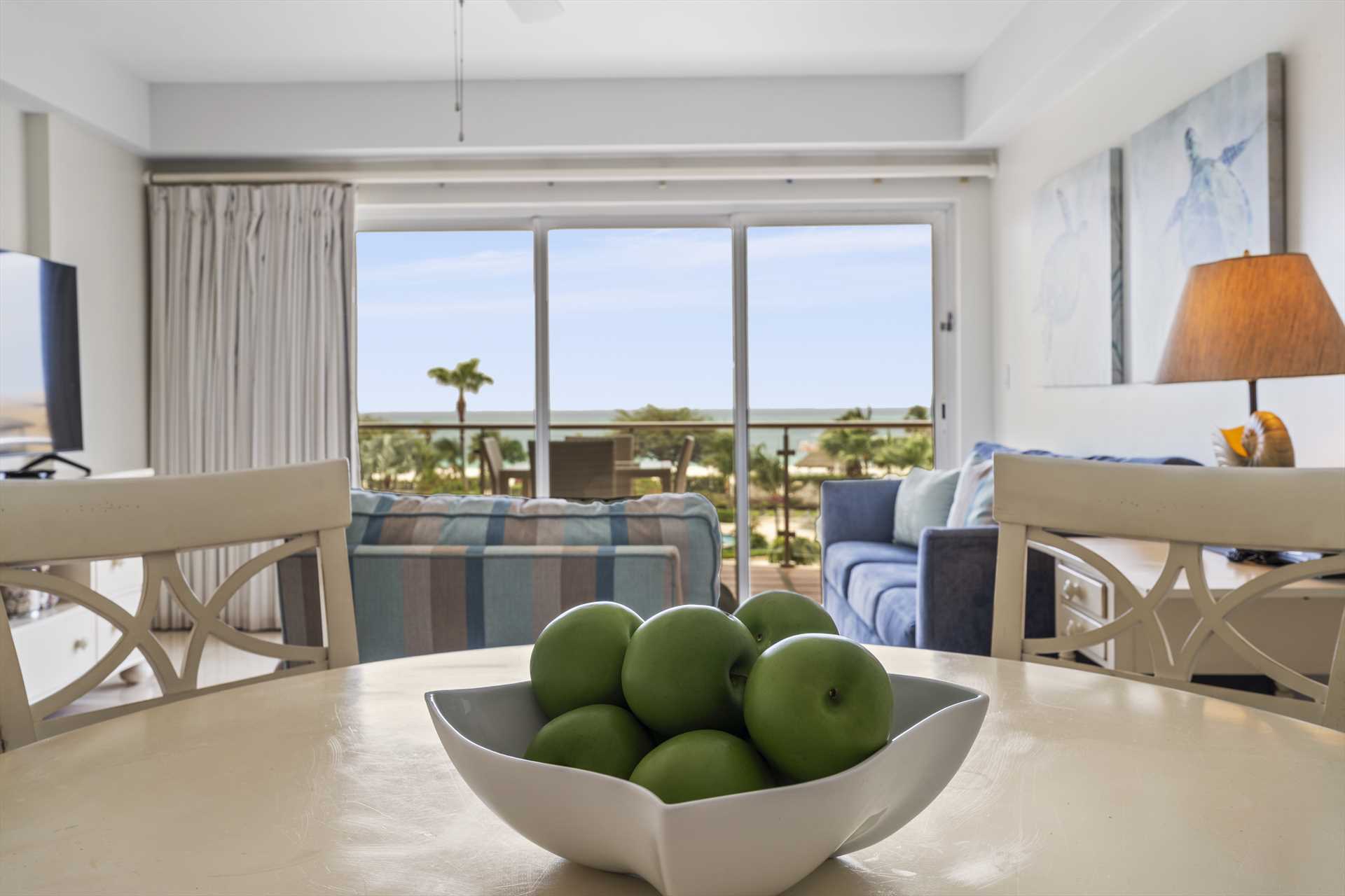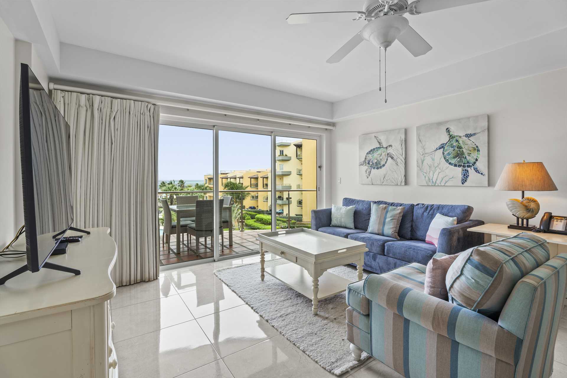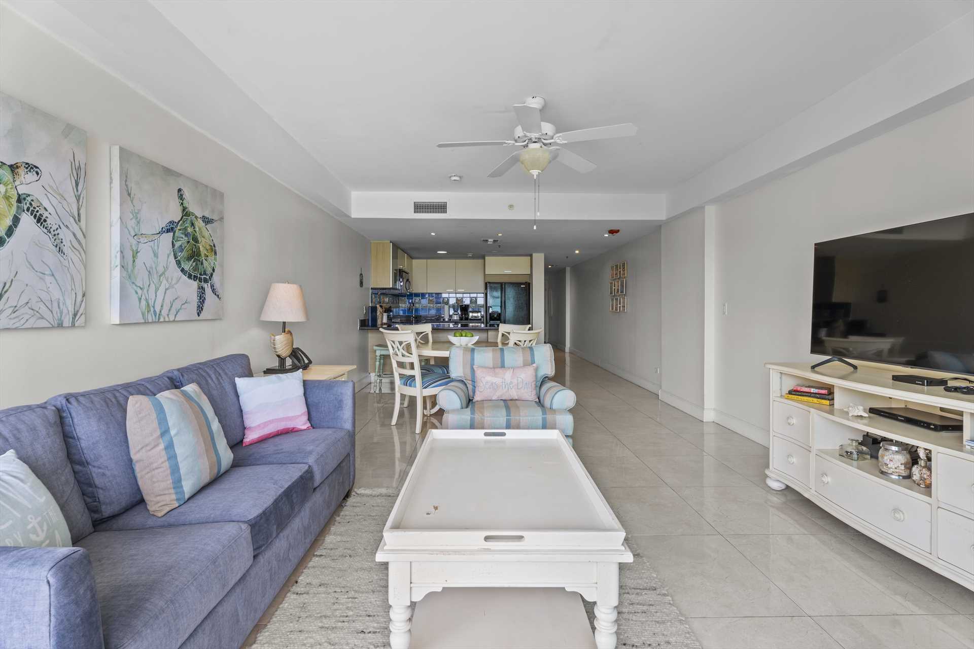 With 1,600 sq. ft. of living space, this unit ensures ample space for relaxation. Amenities include a code-lock safe box, two cable TVs (in the living room and primary bedroom), complimentary Wi-Fi, and free parking. Beach essentials such as chairs, towels, and a cooler are provided. This unit is located in the Arashi building of the Oceania complex, on the third floor.