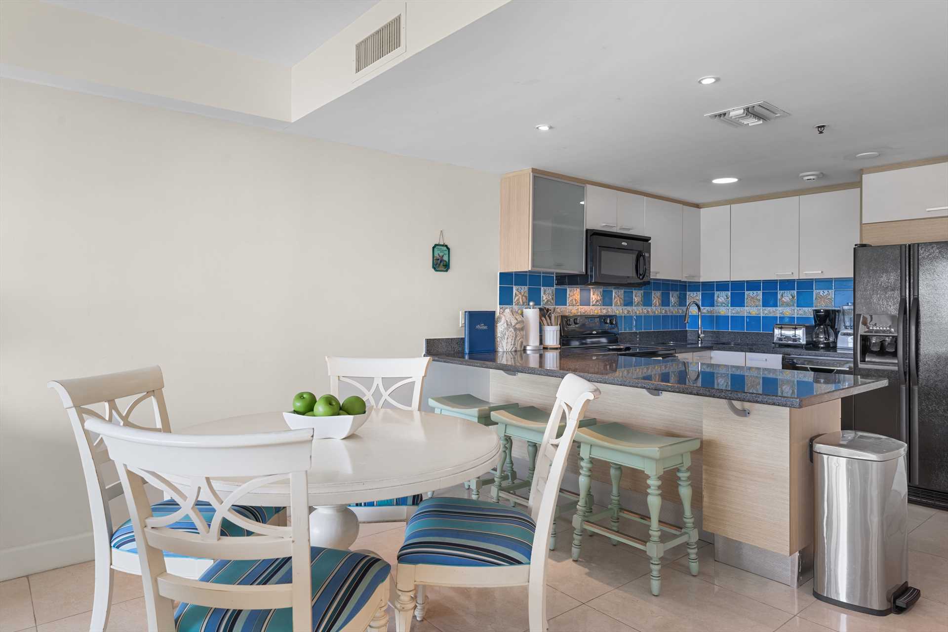 This unit is conveniently located on the same floor as the Amazing View Two-bedroom condo (A342) and the Paradise View Two-bedroom condo (A346). This setup is ideal for larger groups or families seeking nearby accommodations while enjoying their private condo. Together, these three units provide a total of 6 bedrooms and 8 bathrooms, accommodating up to 18 guests.