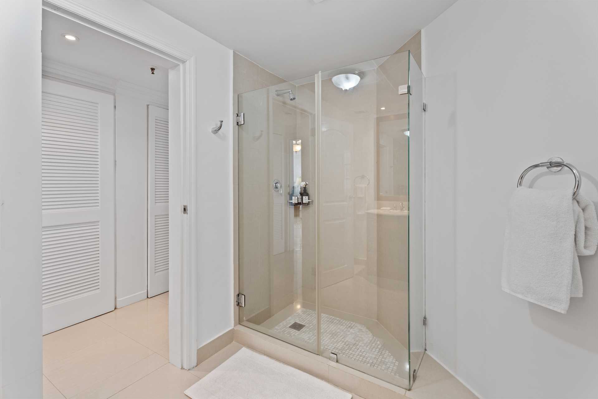Each shower includes Aruba Aloe shampoo, conditioner, and shower gel - made with 100% pure Aloe Vera to hydrate and nourish your skin and hair.
