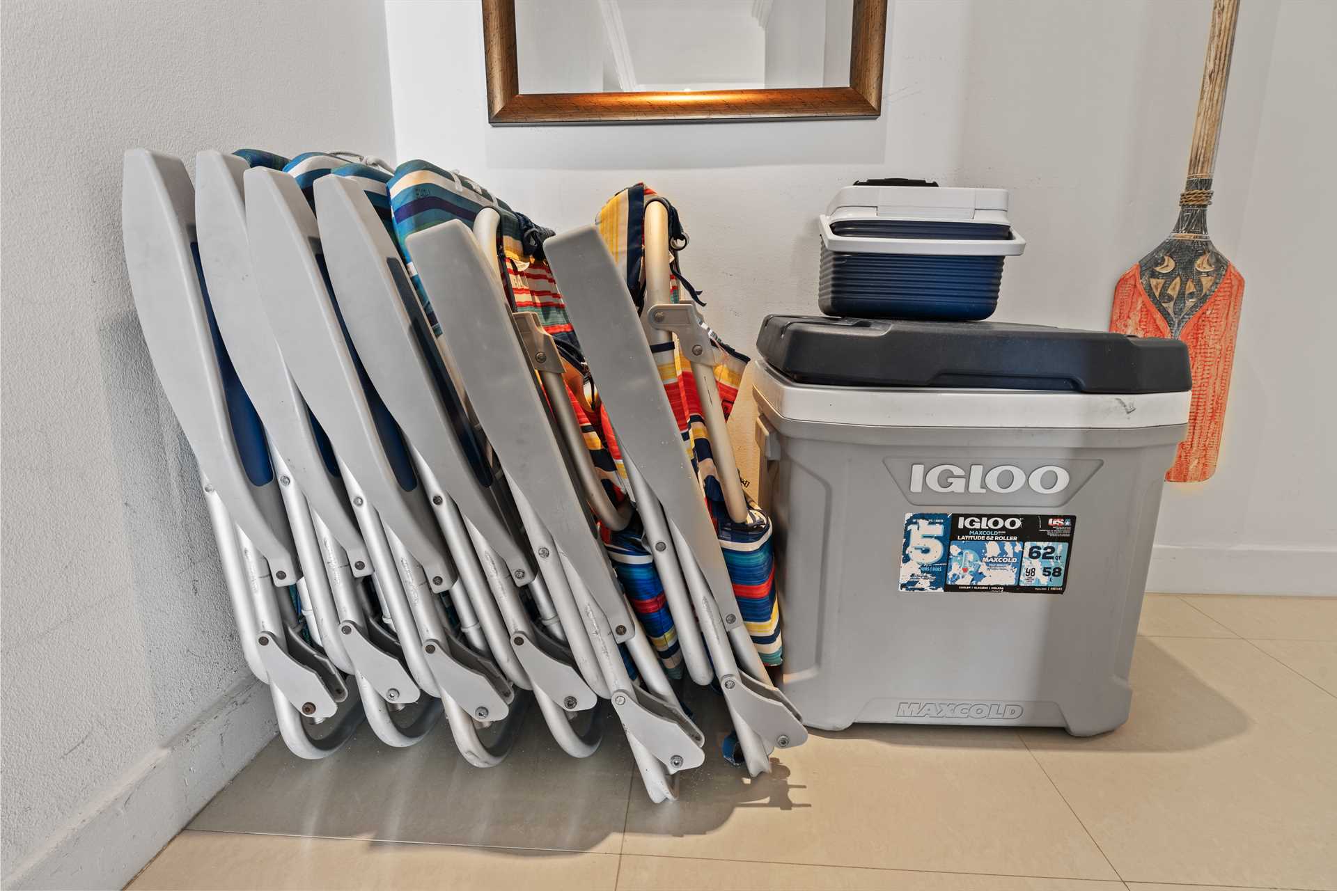 This property includes beach chairs according to the guest count, a cooler, and beach towels for your convenience.