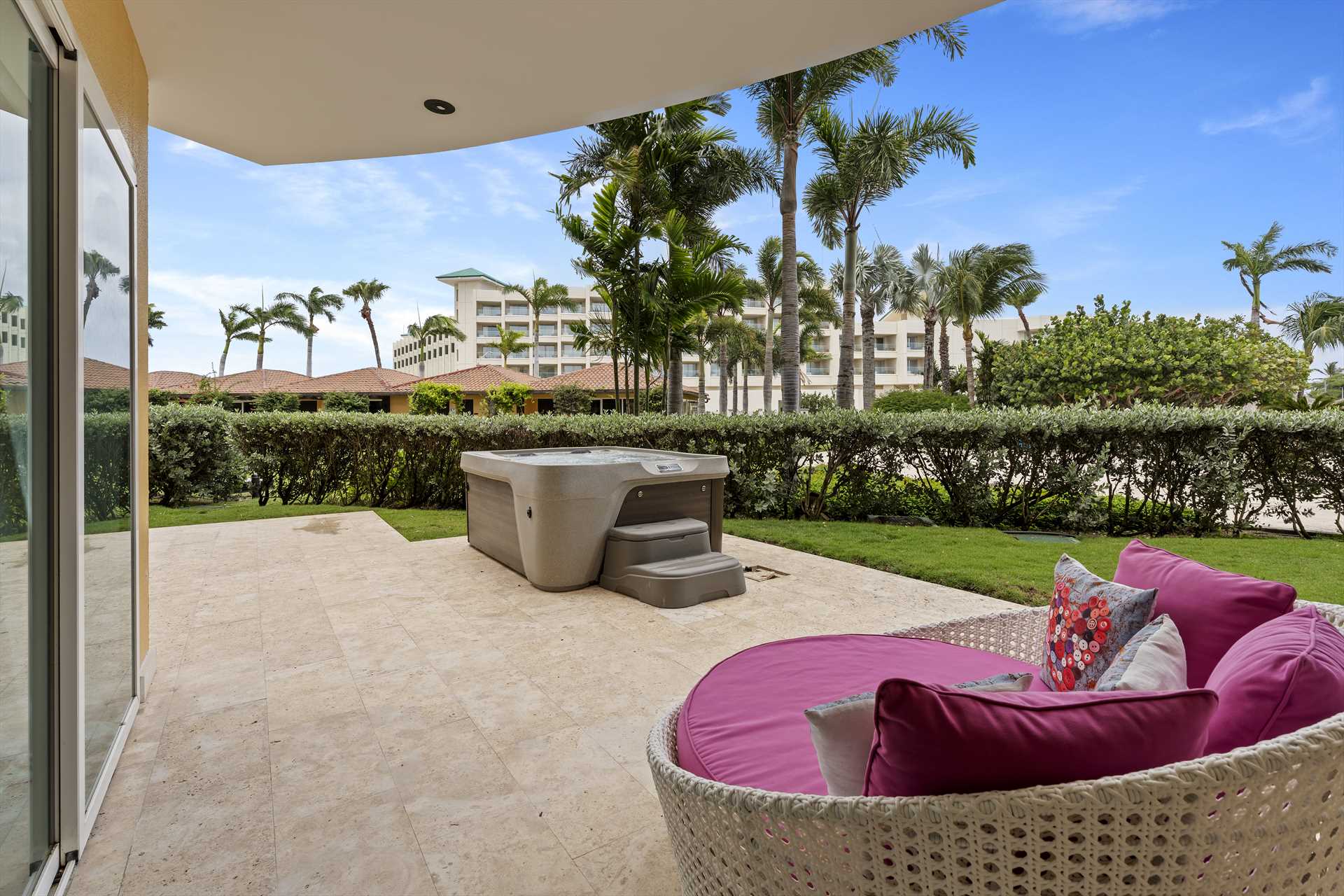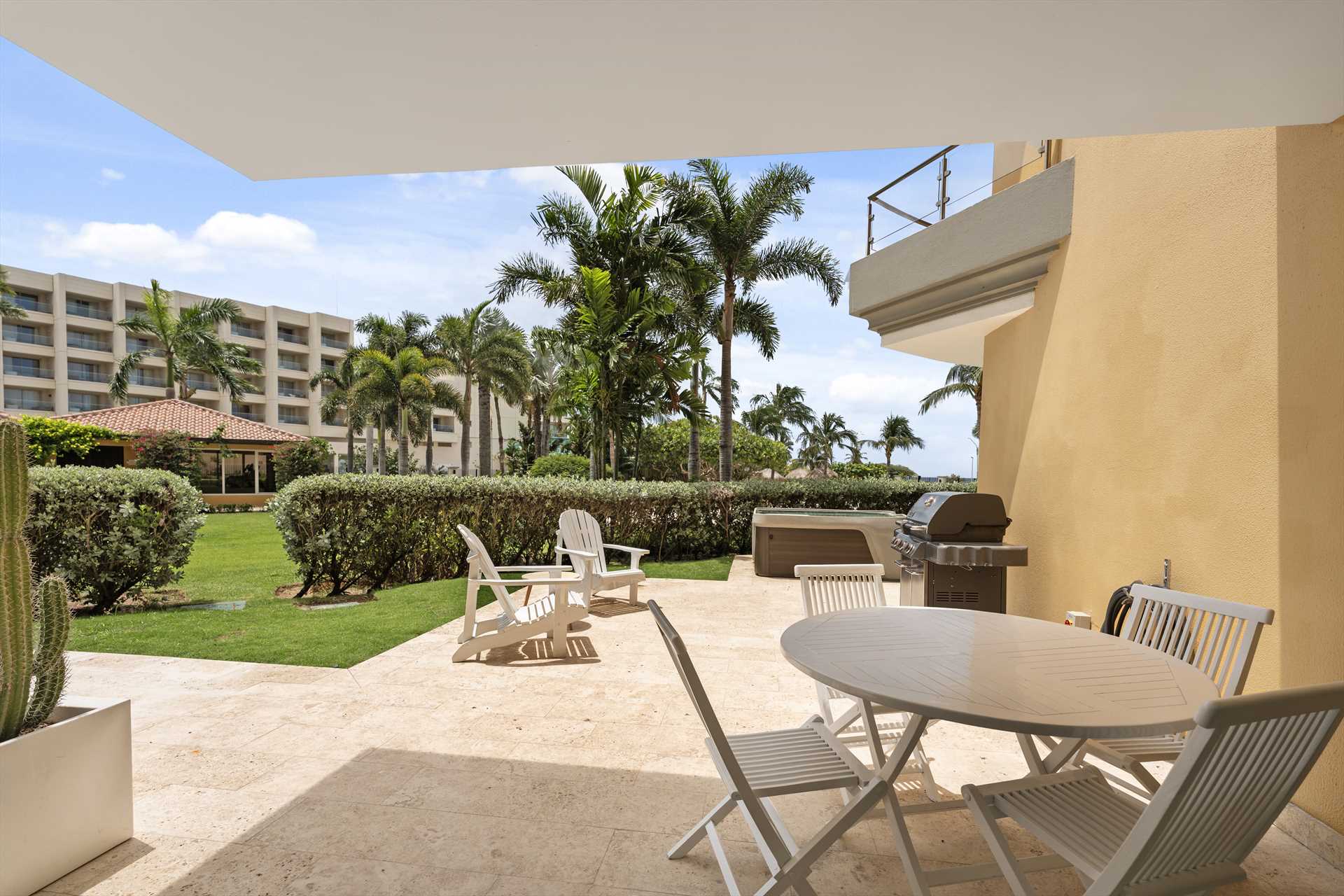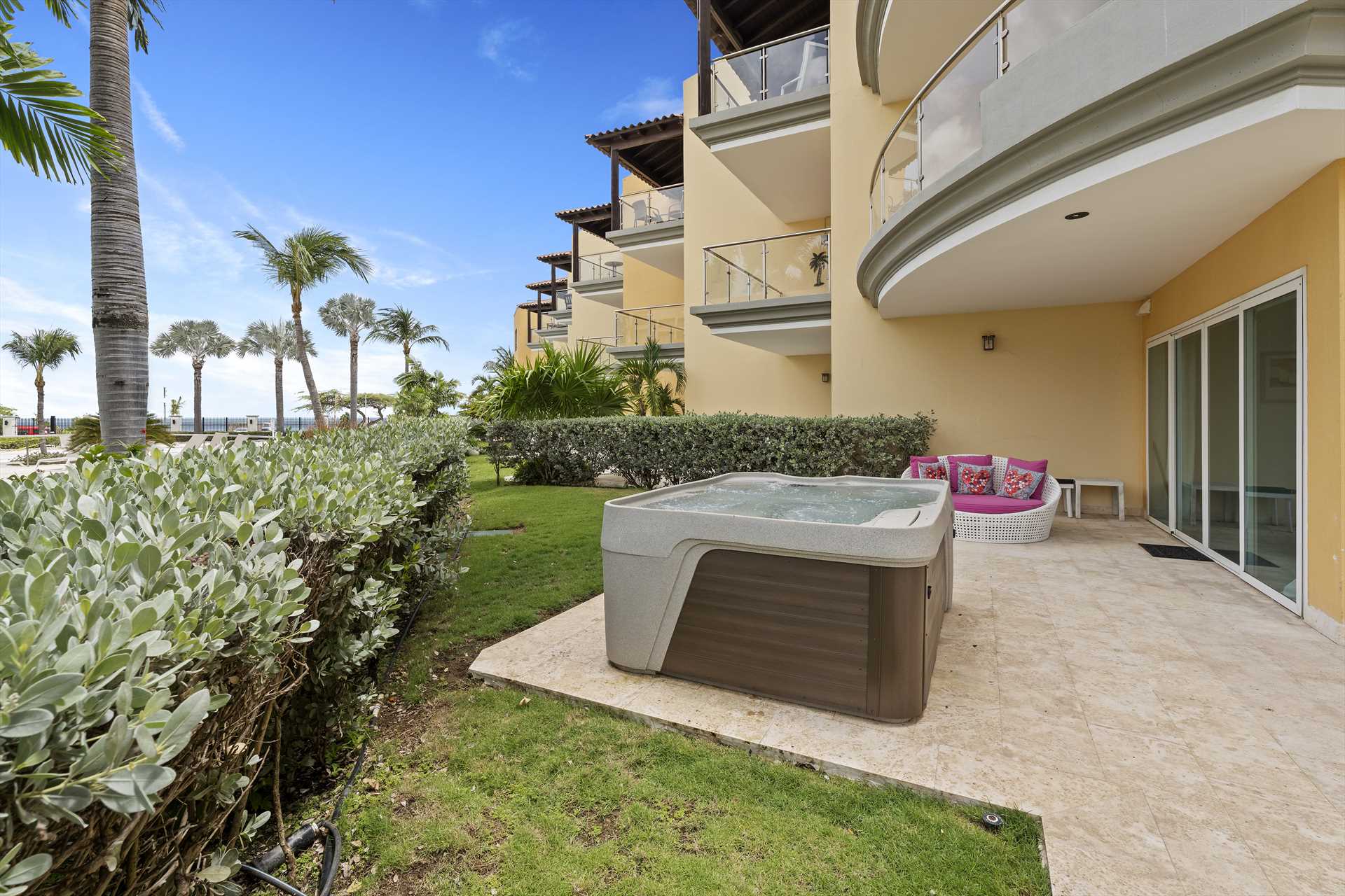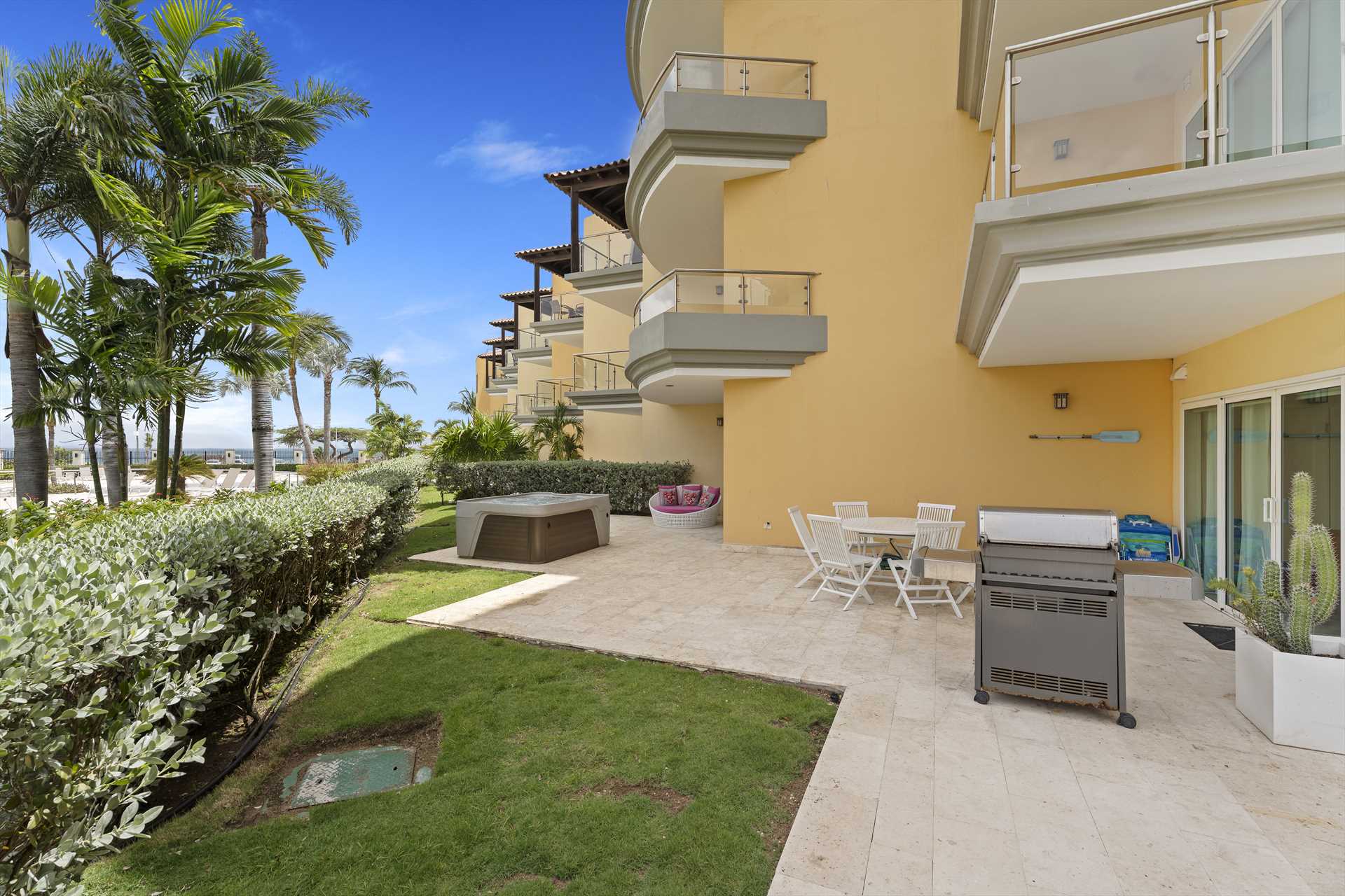 The Beach Garden Two-bedroom condo is a spacious ground-floor retreat, perfect for families or couples who love outdoor living in a tropical paradise. It features a large private terrace complete with lounge and patio furniture, a 4-person outdoor hot tub, and a gas BBQ grill-all surrounded by lush tropical landscaping and offering stunning ocean views.