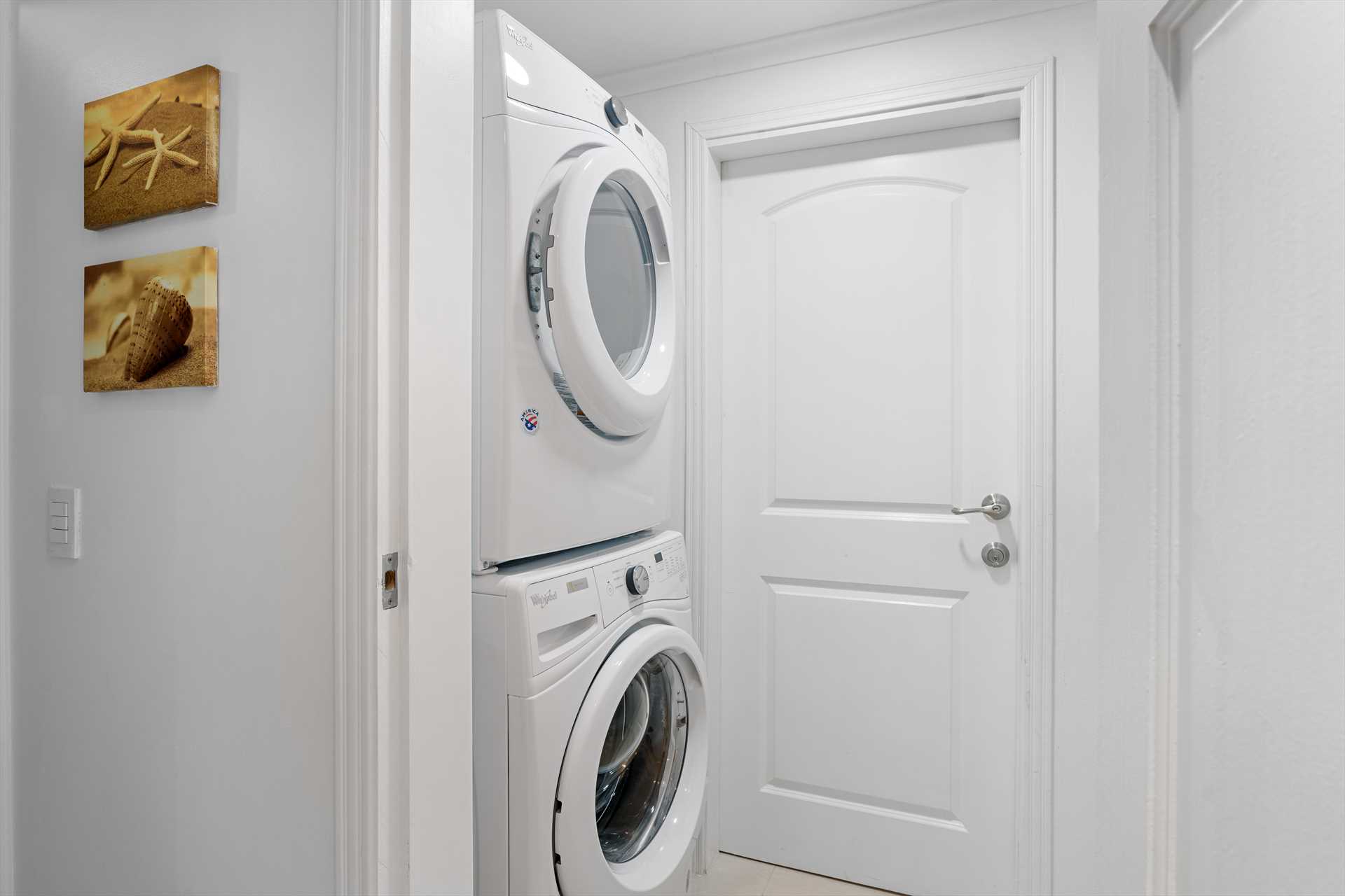 This unit offers a semi-private laundry with a washer and dryer, shared on alternating days with the adjacent Beach Garden Studio condo, secured with locks on both sides.