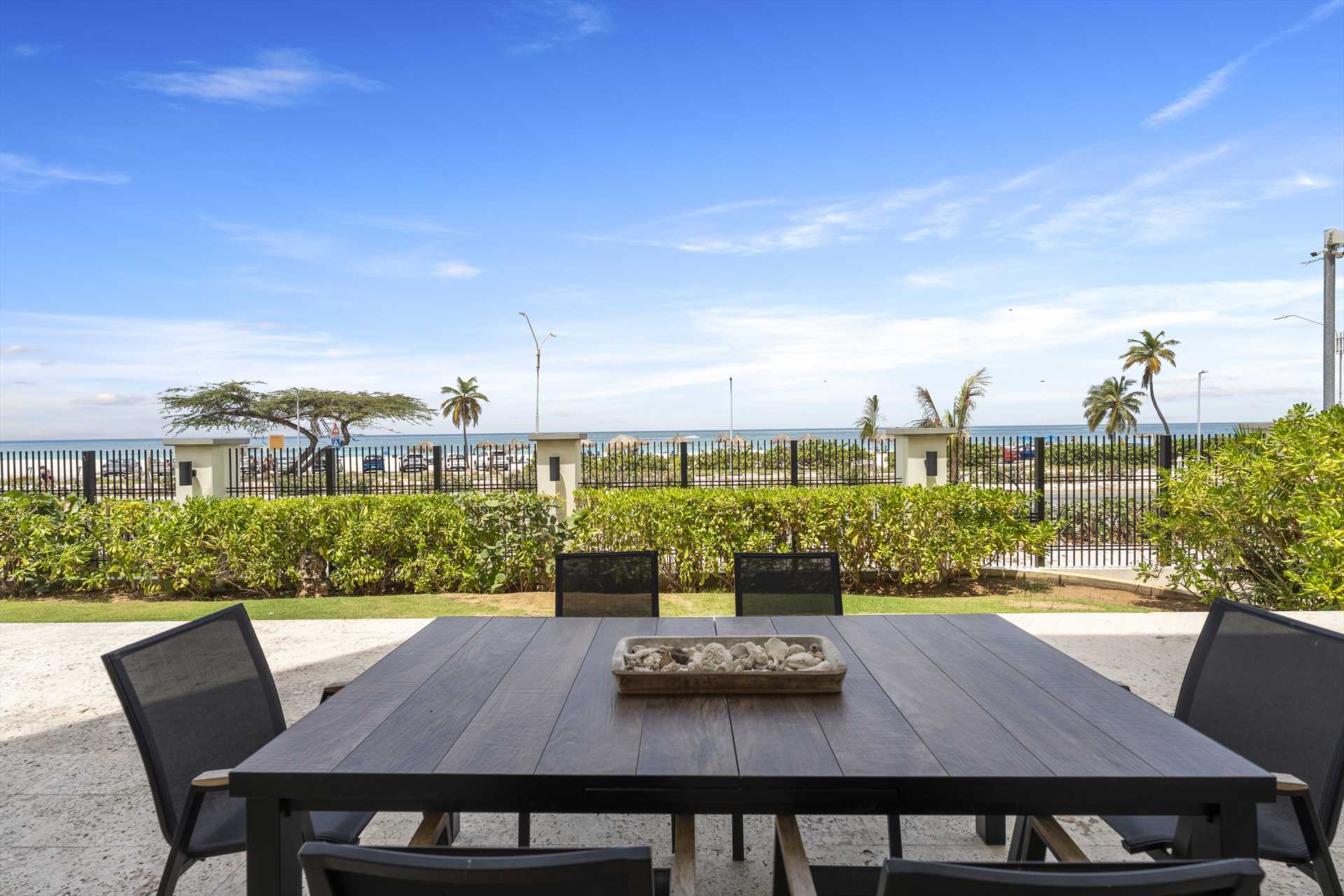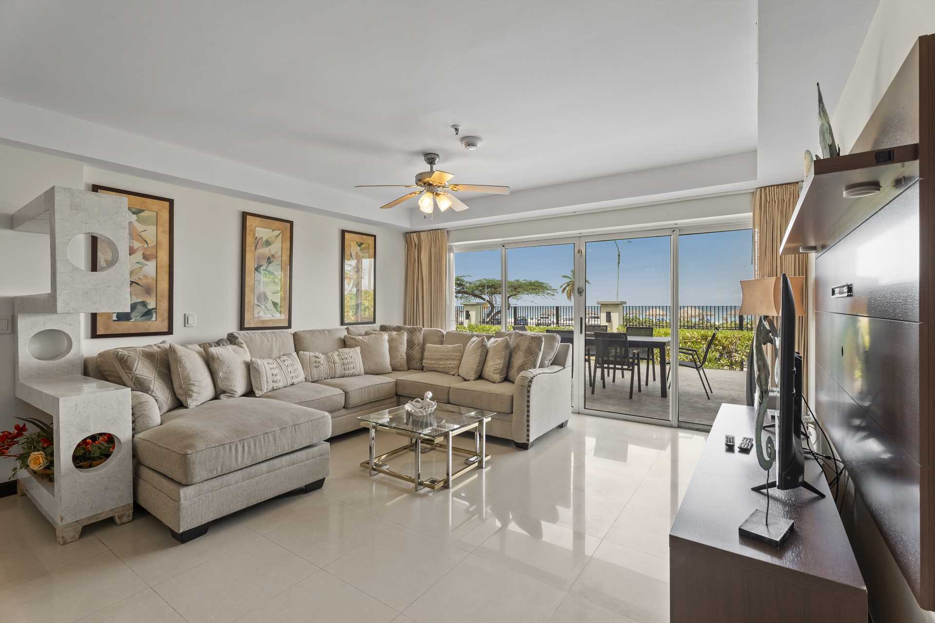 This unit provides you with 2,300 sq. ft. of living space, plus an additional 1,200 sq. ft. of private patio and garden space. Free broadband wired and wireless internet, three cable TVs, are available for your extra comfort. This unit is located in the Eagle building on the ground floor, right on the Eagle Beach.-Sleeps max 6.