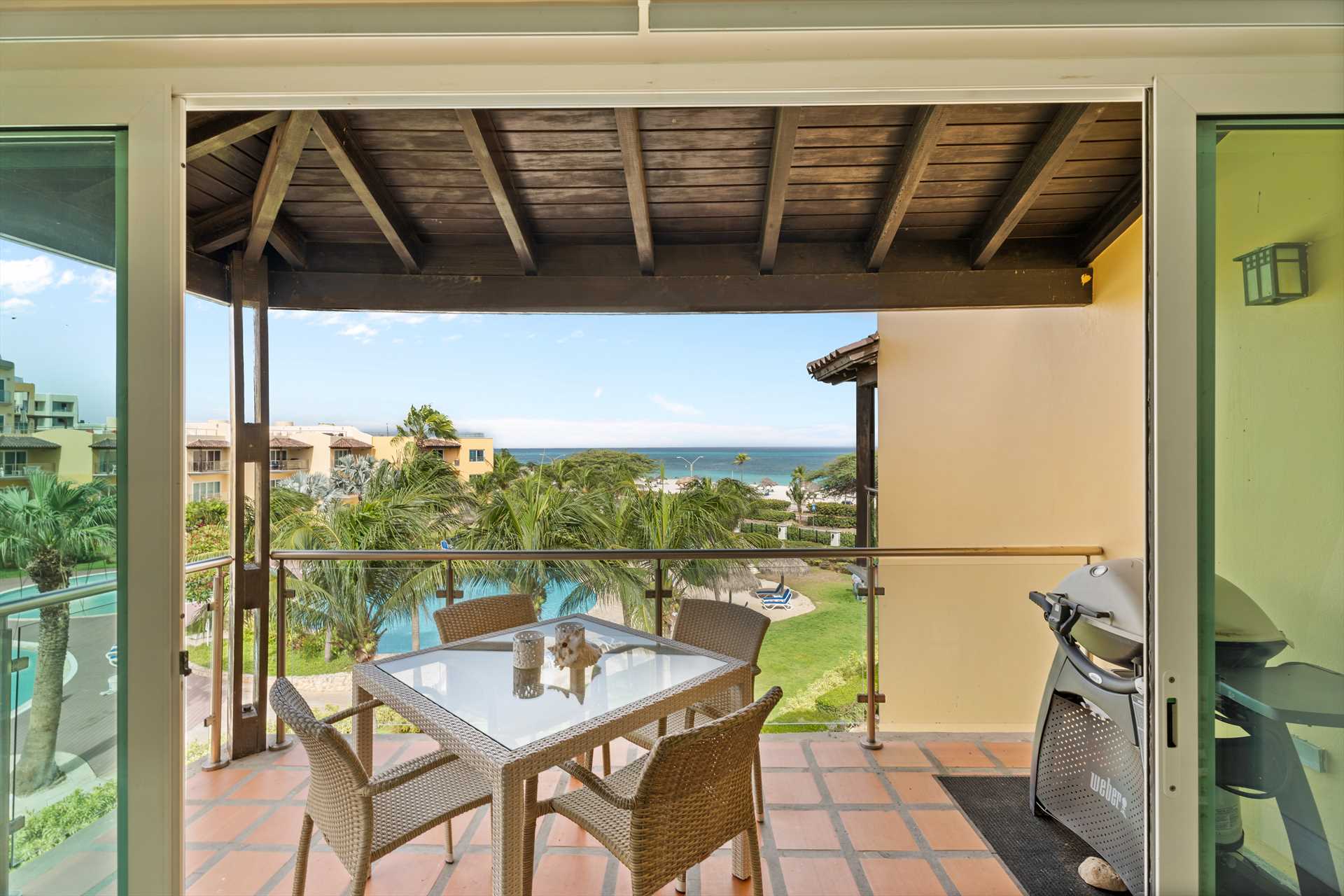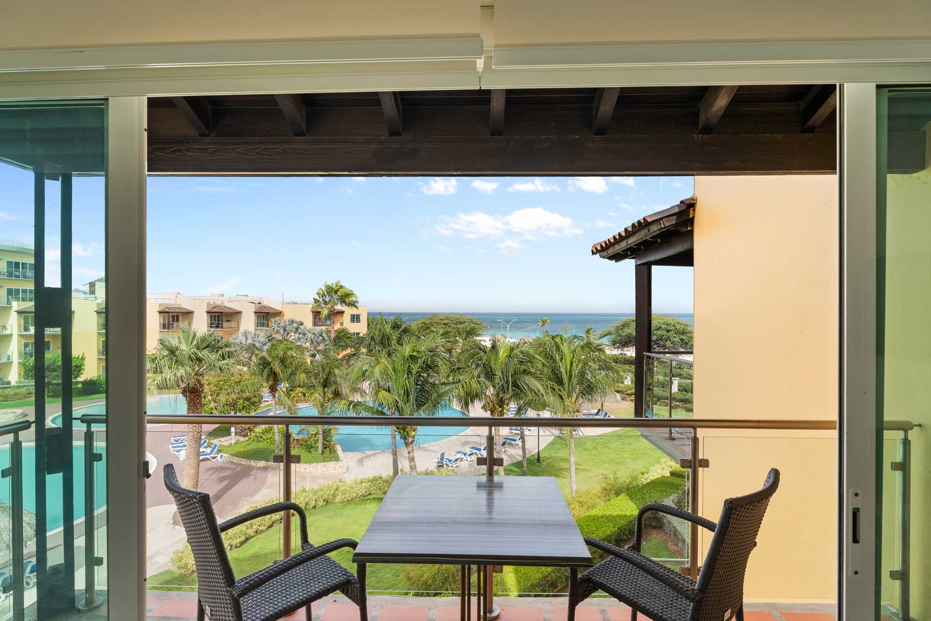 Boasting two bedrooms with each a king-size bed, the Turquoise View Two-bedroom condo is ideally furnished to accommodate two couples, with or without kids. This great condo has amazing ocean views from both balconies and is just a few steps away from one of the best beaches in the world, Eagle Beach in Aruba.