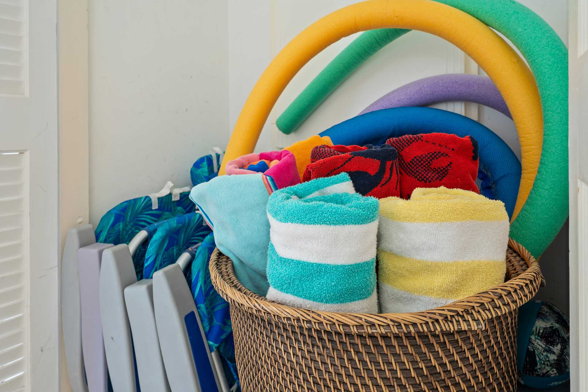 This property includes beach chairs according to the guest count, a cooler, and beach towels for your convenience.