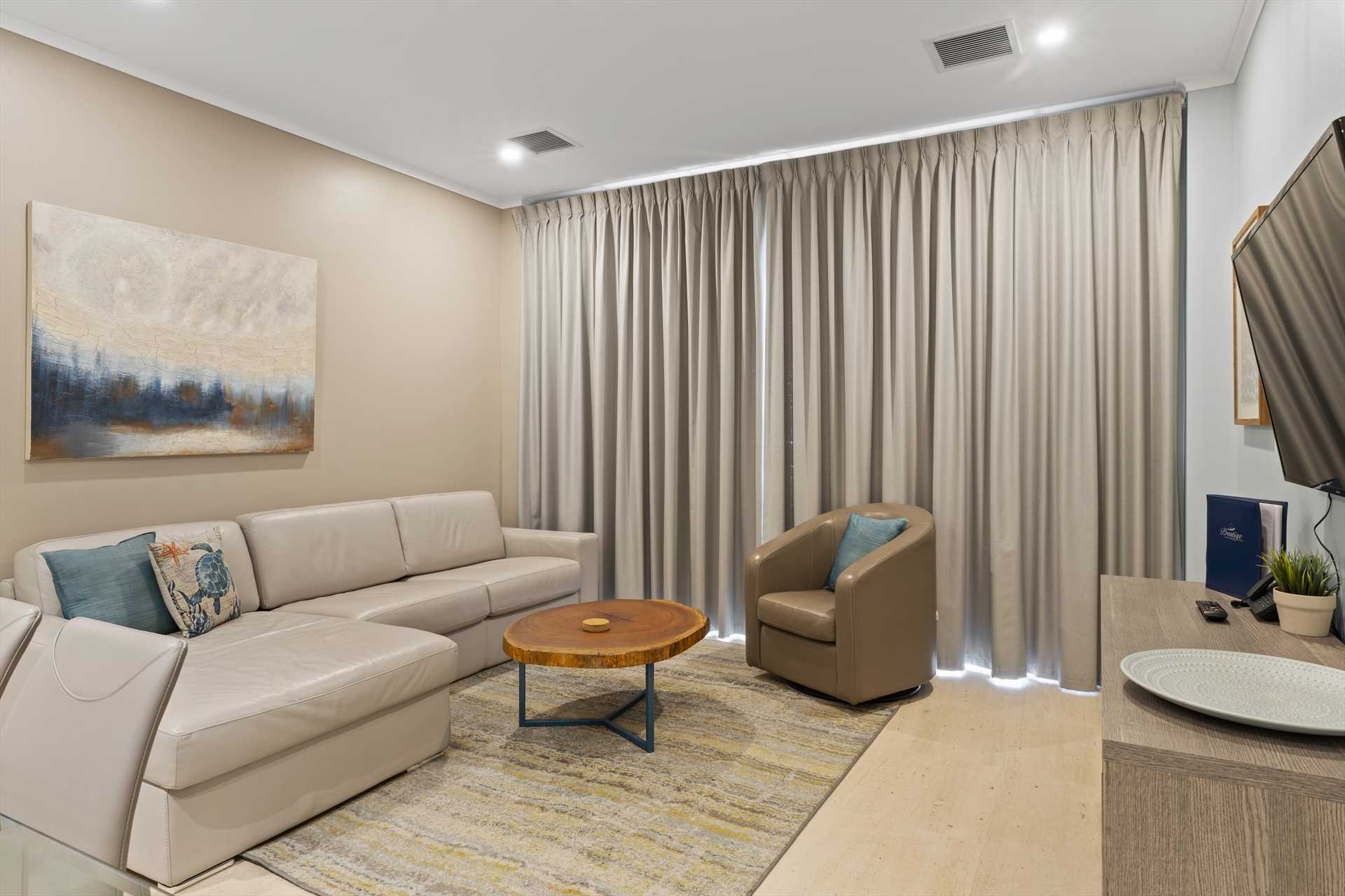 This unit provides you with 1,280 square feet of living space, a code-lock safety box, free unlimited WiFi, cable TV and three flat screen TV's (in the living room and each bedroom). This unit is located on the left hallway off the elevators on the second floor. Sleeps 6 guest in 2 beds and a double-size sofa-bed.