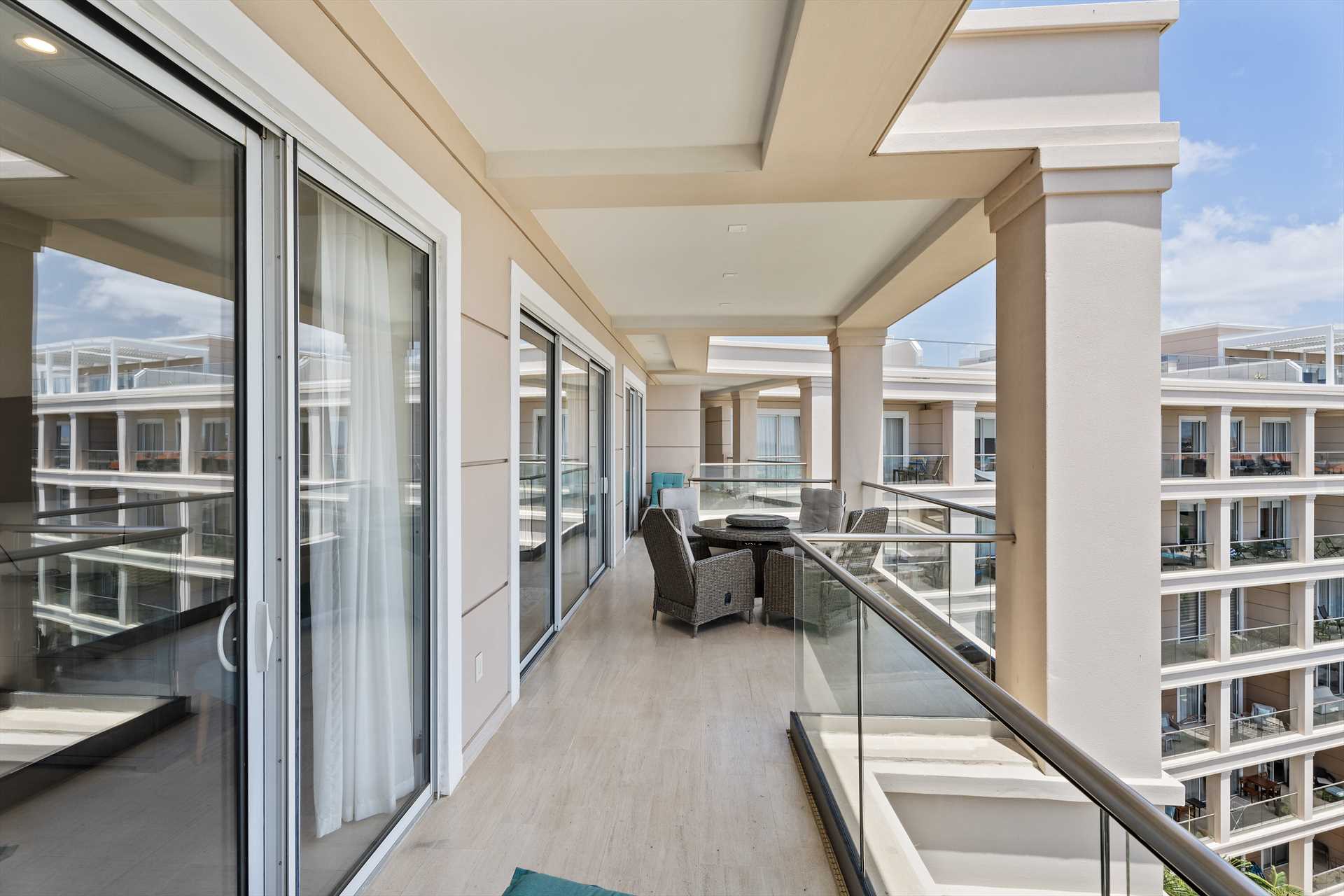 This unit provides you with 1,440 square feet of living space and about 110 square feet of outdoor space, a code-lock safety box, free unlimited WiFi, and three cable TVs (in the living room and each bedroom). This unit is located on the right hallway off the elevators on the sixth floor. Sleeps 6 guests in 2 beds plus 1 double-size sofa-bed.