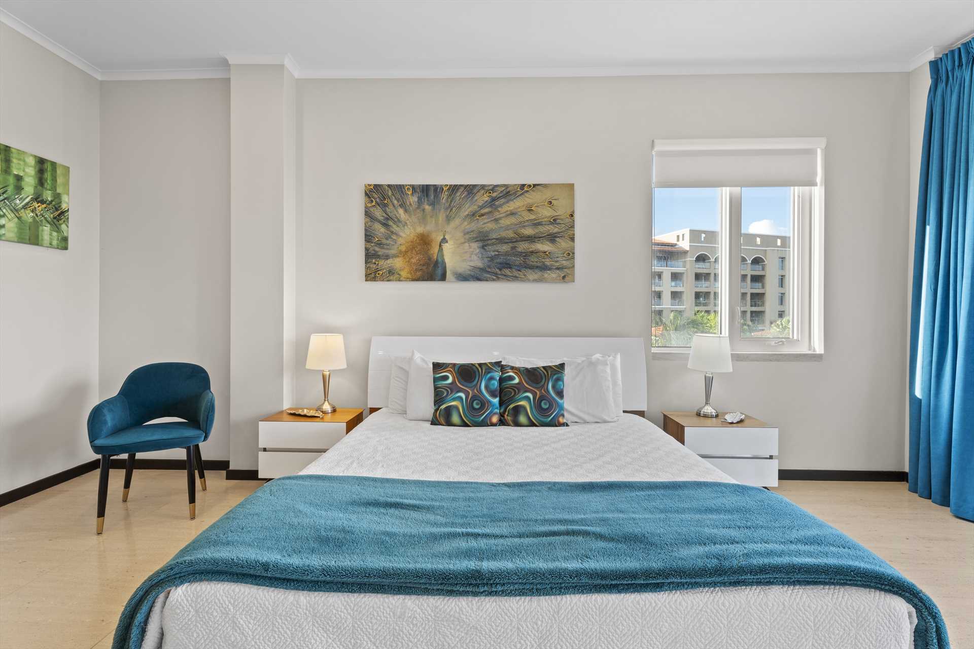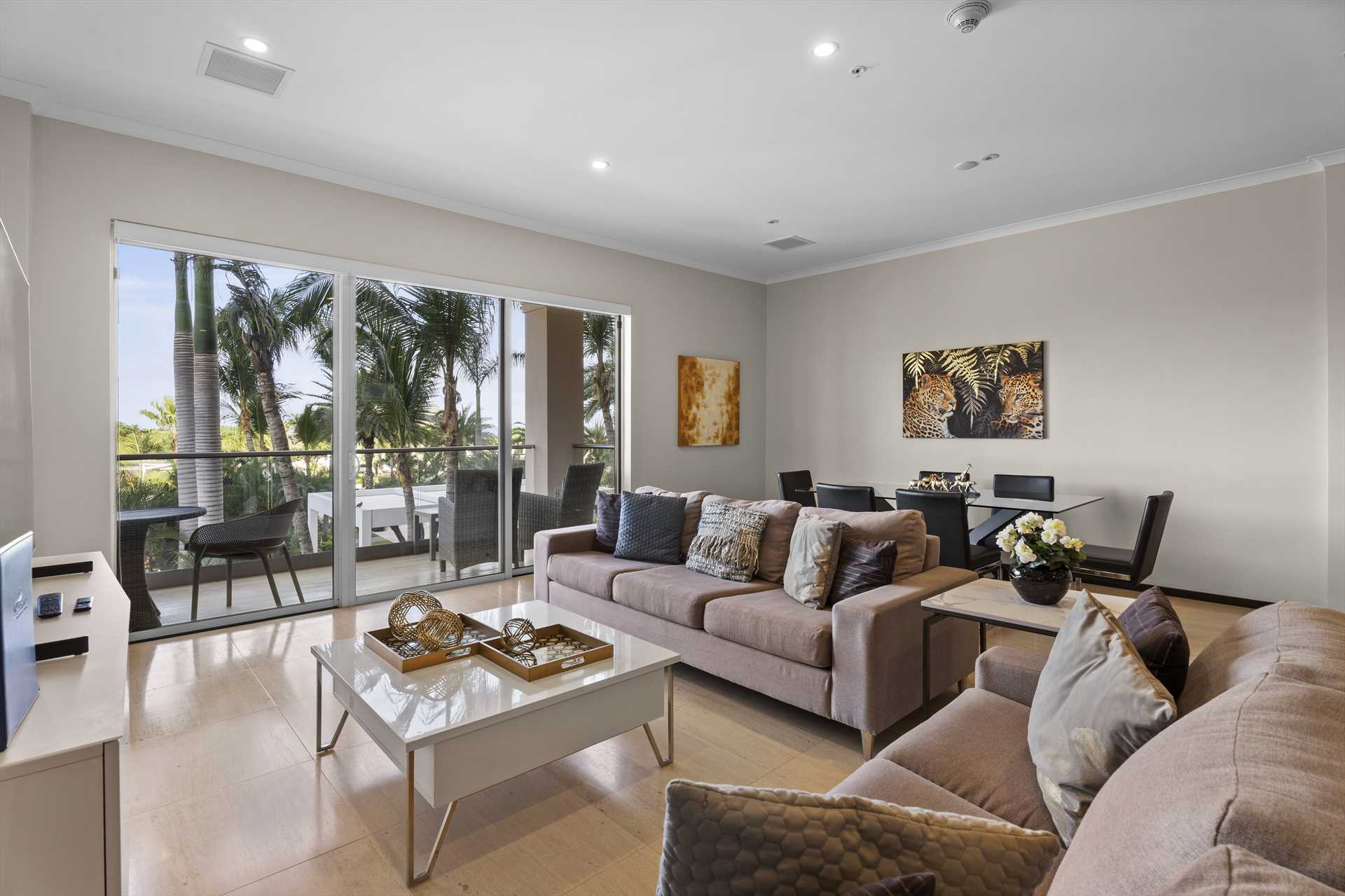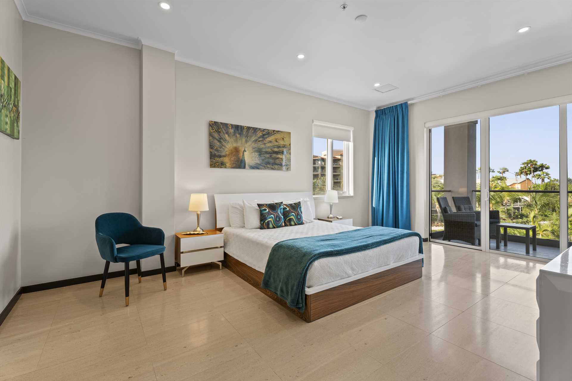 The Larimar Delights Three-bedroom condo is the perfect beach holiday retreat to spend a memorable holiday with up to eight families or friends. The white sand beach and turquoise water of the world-famous Eagle Beach are just a few steps away. This luxurious vacation rental accommodation is located at the LeVent Beach Resort Aruba, the newest vacation rental resort on the island. The balcony, stretching across the primary bedroom and living room, offers you outdoor seating to enjoy the serenity and the tropical landscaping of the resort. Come and enjoy the tranquil resort, the soothing ocean, and feel the sunlight dancing beneath Caribbean waters.